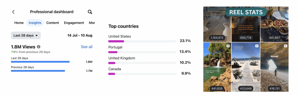 Com mais de 102 mil seguidores no Instagram e cerca de 2 milhões de visualizações mensais, o canal de Instagram Portugal Beach Life é hoje uma das principais referências premium de turismo em Portugal, alcançando viajantes de todo o mundo — sobretudo do Estados Unidos, Canadá, Reino Unido, Brasil, Espanha e Alemanha — assim como portugueses que estão a planear férias.