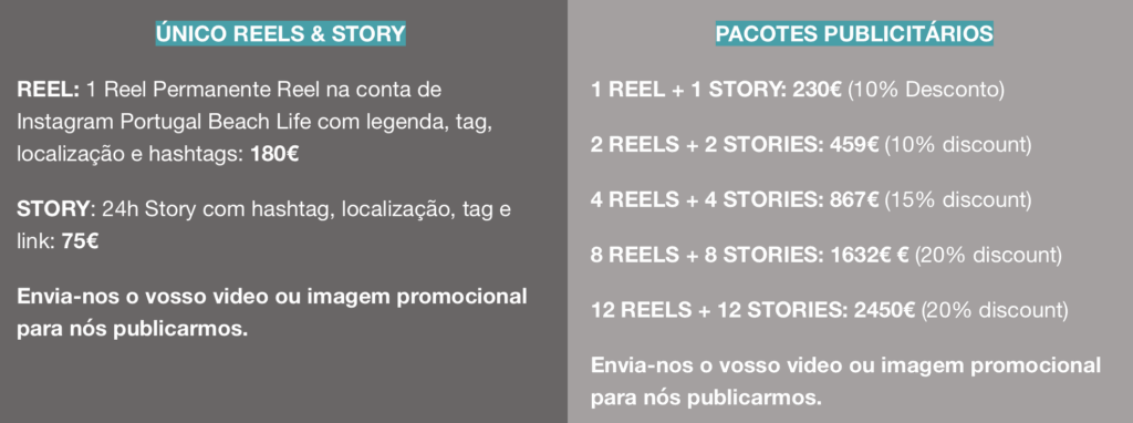 - Criação e publicação de um video permanente no canal de Instagram Portugal Beach Life.